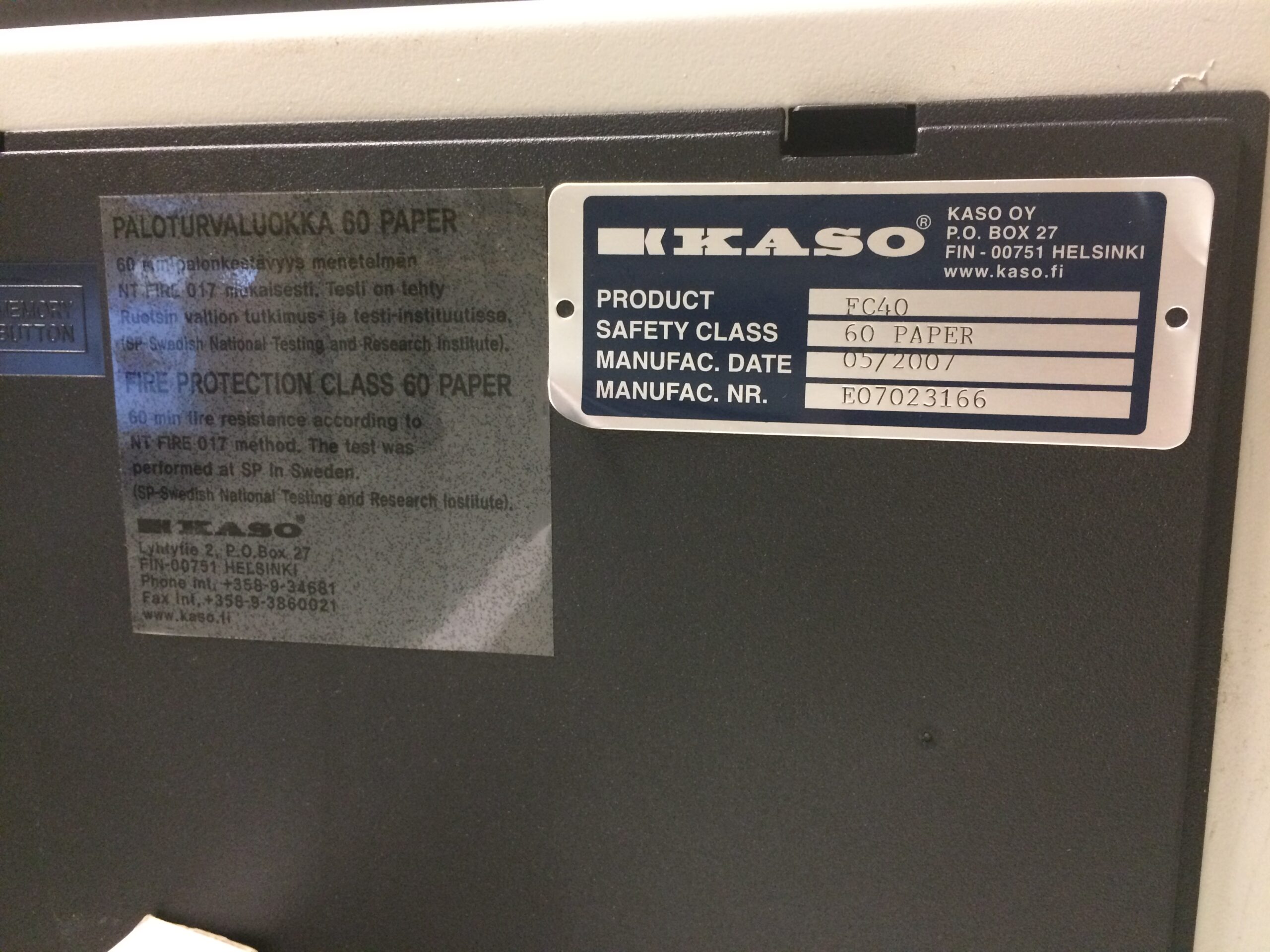 Kasutamata, näidiskapp, Kaso FC-40