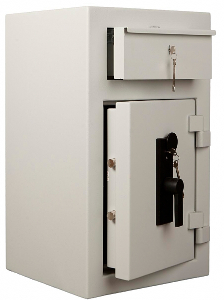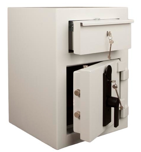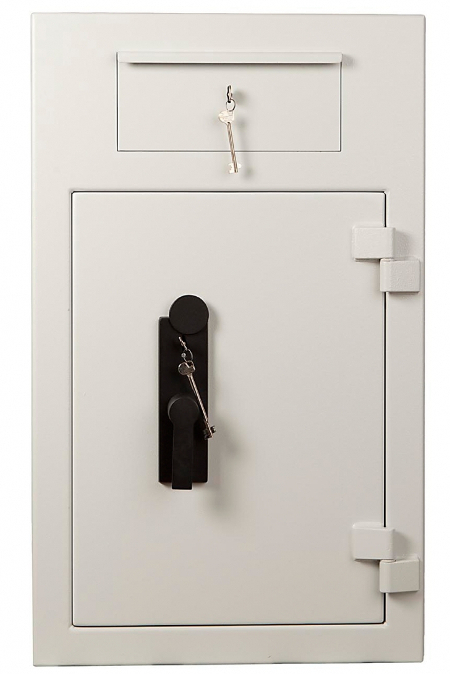 Võtmelukuga suletav deposiitsahtel raha sisestamiseks