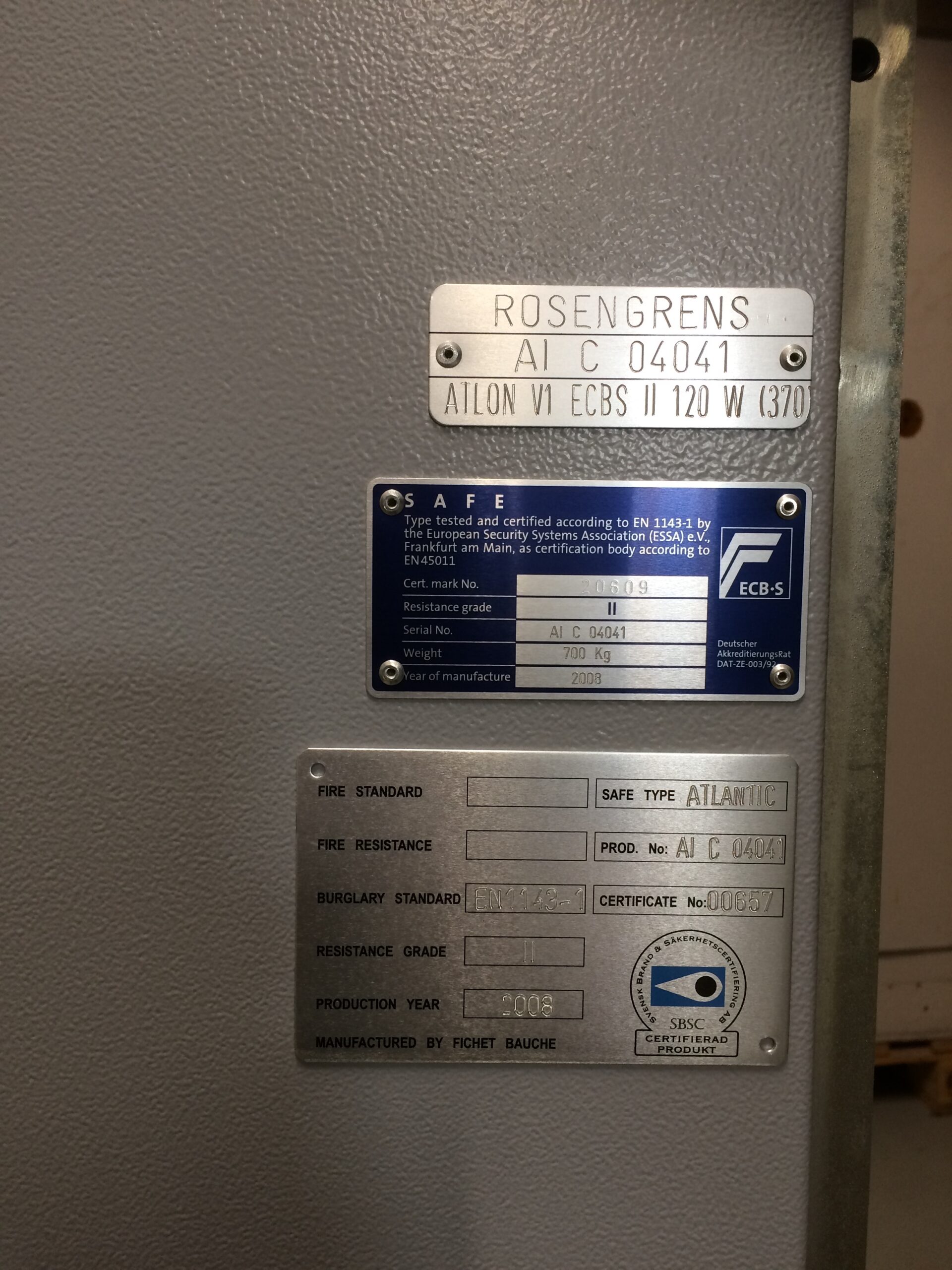 Kasutatud seif Rosengrens Atlantic Grade II EN 1143-1 ECB.S