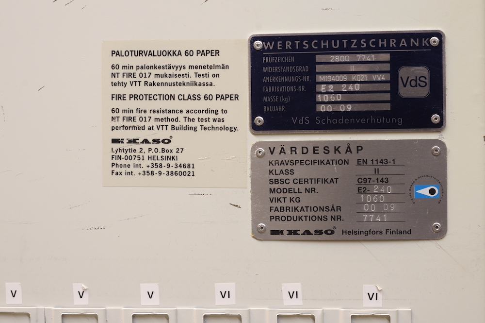Kasutatud tulekindel seif KASO E2-240, VdS Grade II, NT Fire-017 60 Paper MÜÜDUD