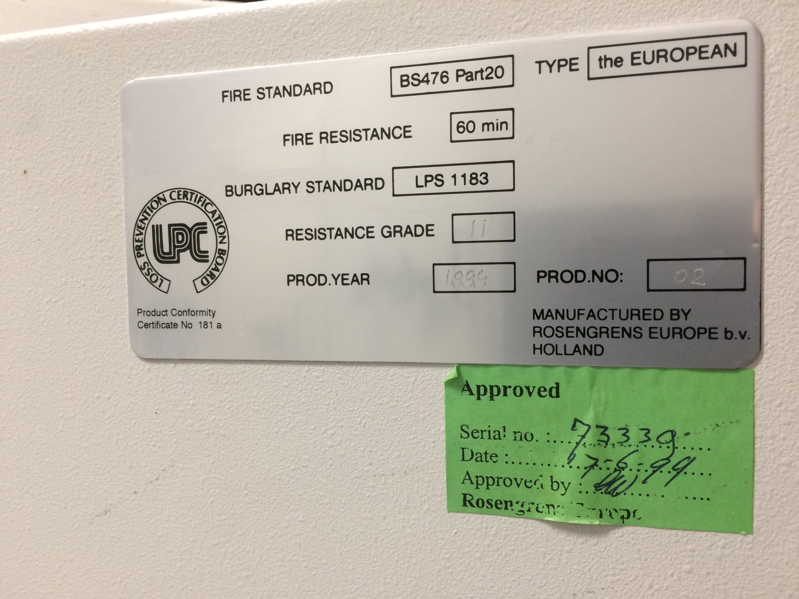 Kasutatud tulekindel seif Rosengrens European II-90 Grade II MÜÜDUD