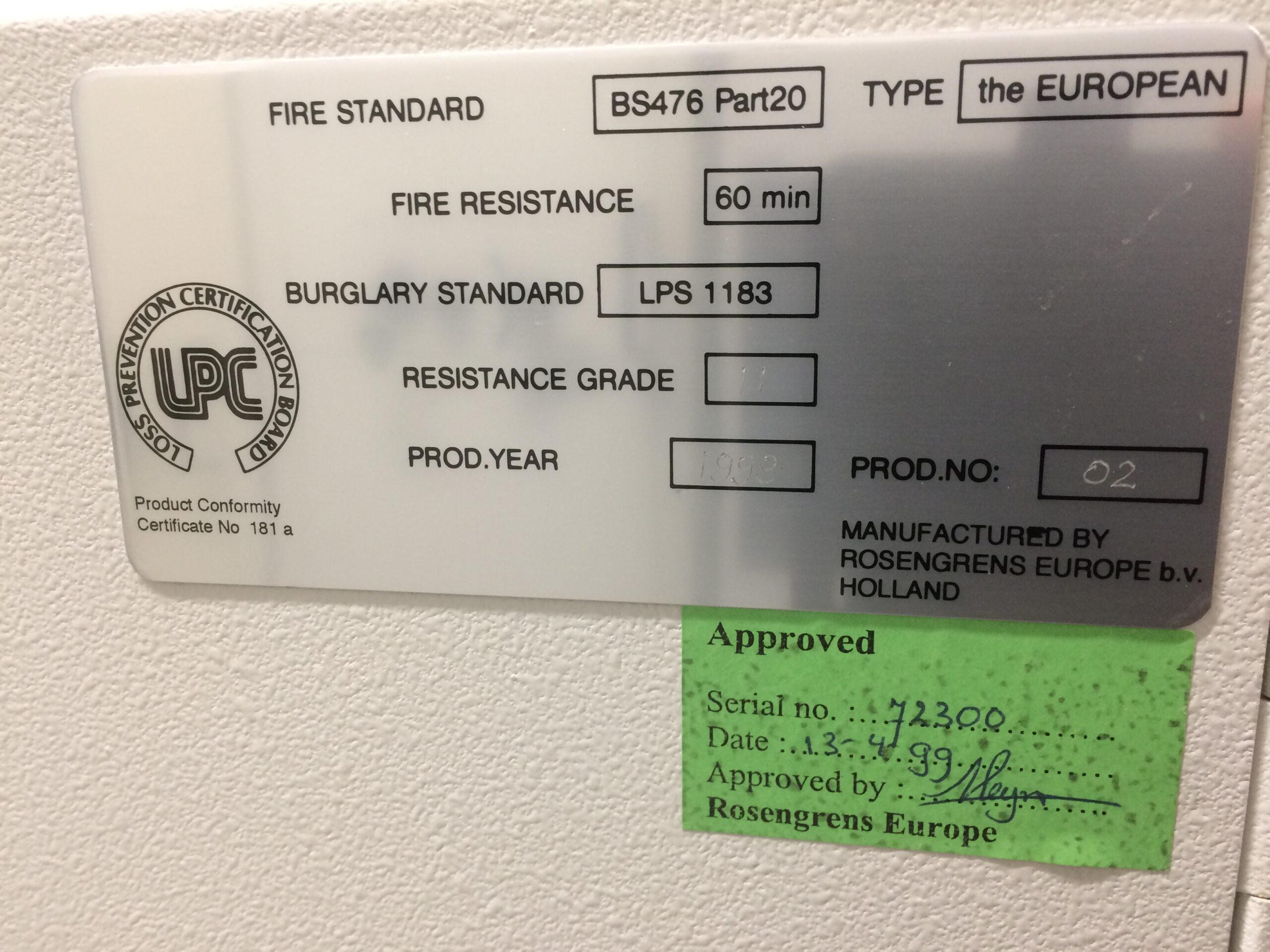 Kasutatud tulekindel seif Rosengrens European II-90 Grade II